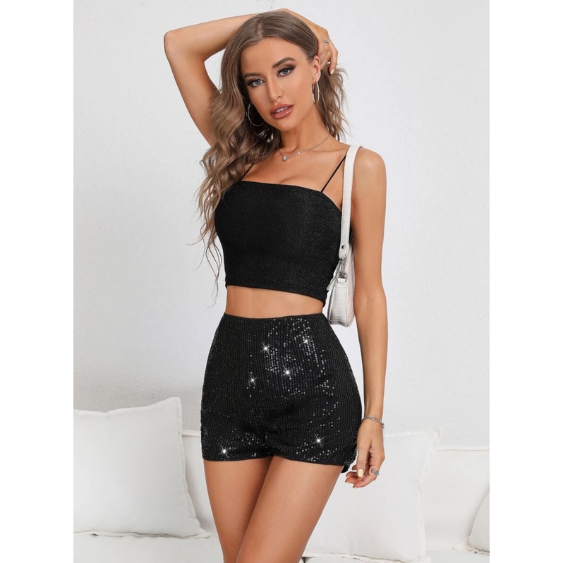 Product Item: Short de paete hot sale preto cintura alta